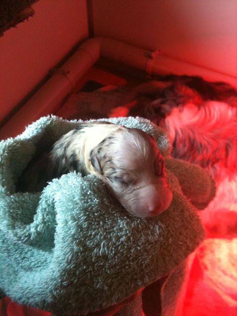 Nr 6 heeft zich uit de feest ruimte gedropt . Blue Merle is de kleur. Het is een ventje…