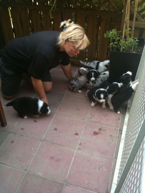 Amai, frisse lucht! Dat zal vreemd zijn voor hun… Ze zien er al weer gegroeid uit! We zijn benieuwd volgende week! Misschien moet ik wel een grotere handtas gaan zoeken om hem al te kidnappen 🙂 Nu begint hij wel echt heel mooi te worden!