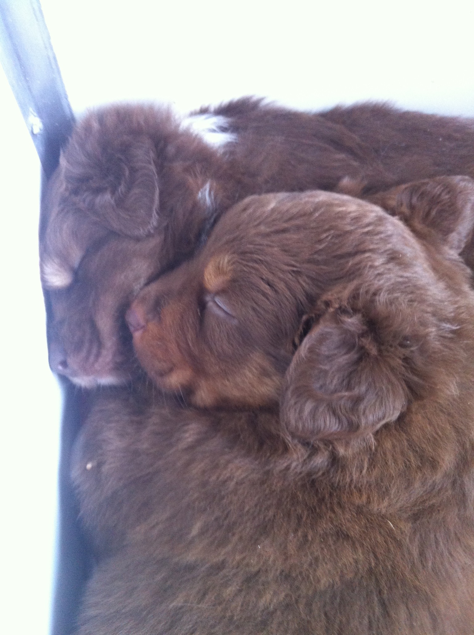 Na deze ‘martelingen’ vielen de rakkers in een diepe slaap. Ze aten een beetje maar de honger was voorbij. De ganse middag en avond hebben ze soezend doorgebracht. Annelies moest Lexy zelfs wakkermaken om haar te knuffelen en Loekie was ’s avonds nog steeds boos en ging dan maar op Billie’s hoofdje plassen (enfin bijna toch).