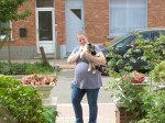 Vervolg: Ons eerste dagje met Lexie zit er alweer bijna op, en ze is écht ‘SUPER’ ! :-)… Na haar middagdutje hebben we puppiebezoek gehad, ze deed toch even een plasje toen mijn metekindje haar (enthousiast) benaderde, maar erna vond ze het allemaal okee. Na een volgende rustpauze hebben we haar nog een kwartiertje samen bij Gino gezet en toen heeft ze weer wat geslapen. Nu zijn we net even 100meter op en terug aan de leiband hier opt straat gaan wandelen, en dat deed ze eigenlijk superverassend goed, we moesten haar wel contstant aanmoedigen om te wandelen, want ze begon steeds aan haar halsband te krabben, maar op een kwartiertje tijd hadden we de 200meter toch afgelegd, en ze had zelfs flink haar kleine en grote behoefte gedaan, en werd hiervoor natuurlijk uitbundig geprezen, super! Nu heeft ze net wat tonijn met brokjes gekregen en ligt ze weer wat lekker te slapen. Straks krijgen we mijn ouders en mijn zus en schoonbroer nog op bezoek om allemaal samen gezellig de EK-finale te kijken, en dan zit de eerste dag erop!