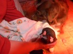 Niettegenstaande hebben ze een enorme liefde van de mama voor koe- en kalfhoefjes geërfd. Urenlang zijn ze zoet ermee. Enfin, totdat broerlief of zuslief op rooftocht komt.Veel gegrom, veel gejank en de broer of zus is weer een hoefje rijker.